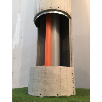 Ogni semicolonna o quarto di colonna è fornito di un angolare metallico pre-piegato longitudinalmente, essenziale per il corretto assemblaggio degli elementi. Questo profilo metallico risulta adeguato per colonne tonde di piccolo diametro e per altezze fino a 3 metri. Per altezze superiori a tale misura, si raccomanda l’impiego di strutture metalliche più robuste, al fine di garantire la sicurezza e la stabilità della costruzione.